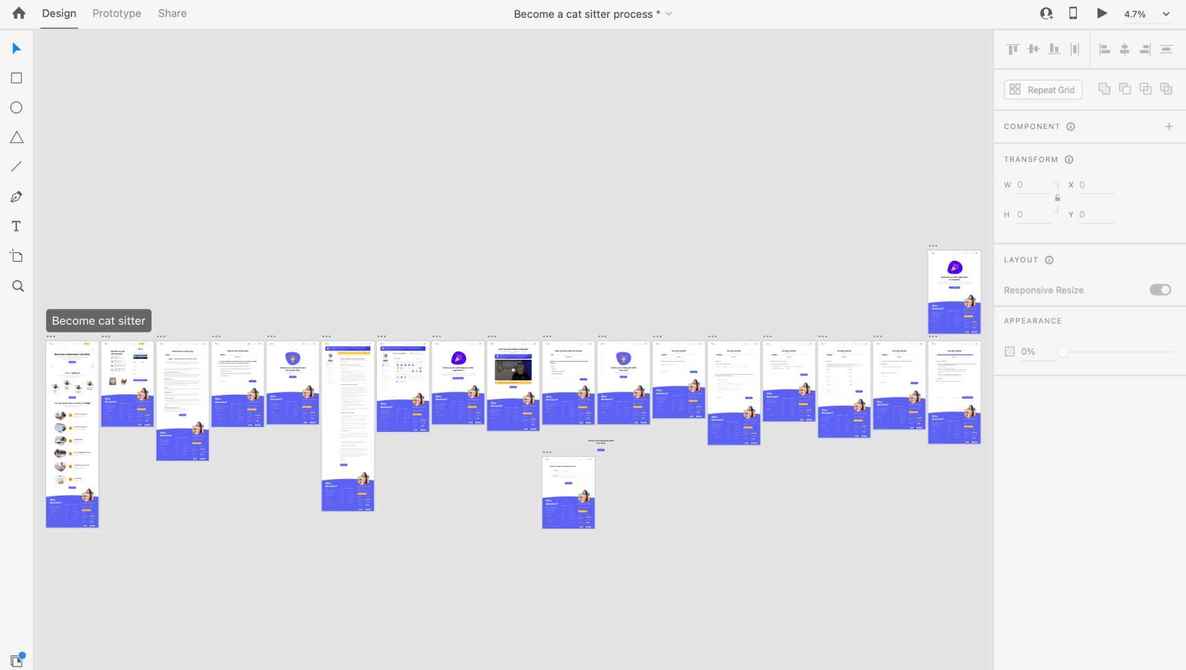 Progressive Onboarding for Cat Sitters: To simplify the onboarding process, I designed progressive quiz steps with playful, engaging visuals, reducing cognitive load at each stage. A celebratory thank-you page acknowledged sitter progress after each quiz stage, fostering a sense of accomplishment.